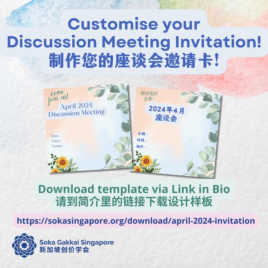 You may also download the invitation template of the month to customise your discussion meeting invitation for friends, click here to download!