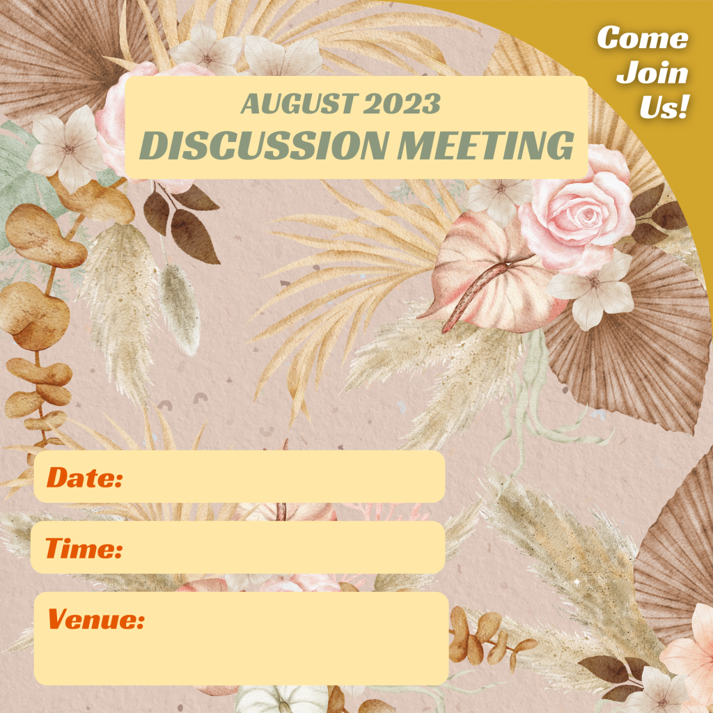 Find out the upcoming activities and download the invitation template of the month here to customise your August discussion meeting invitation today!