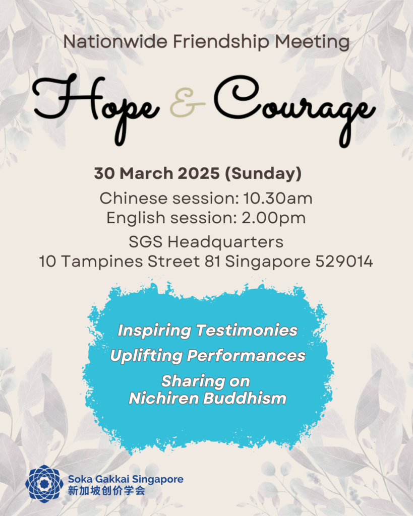 Let’s not miss this chance to invite our friends to the event themed, “Hope & Courage”, and uncover the key to living a victorious and happy life through our practice of faith!