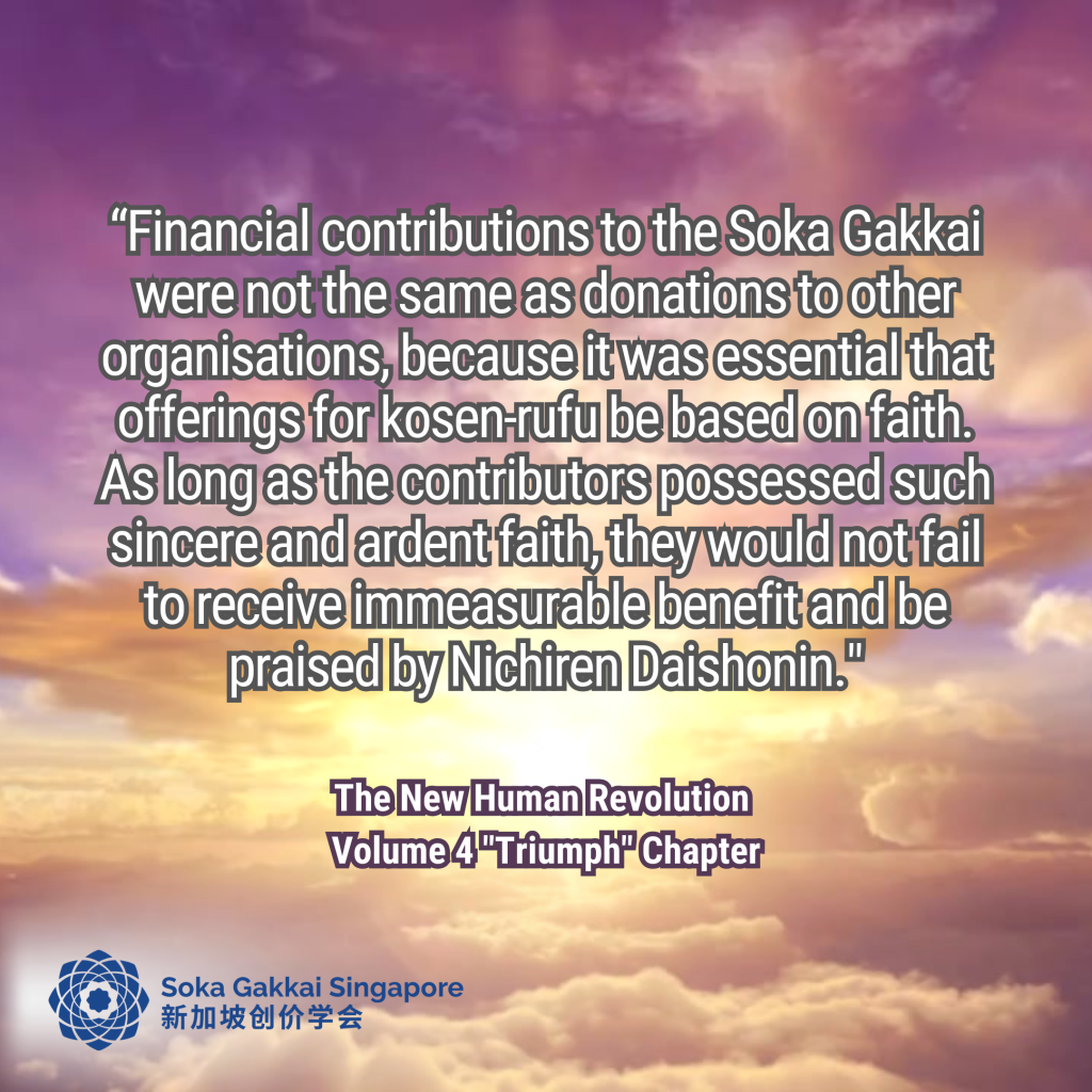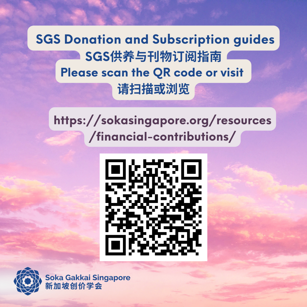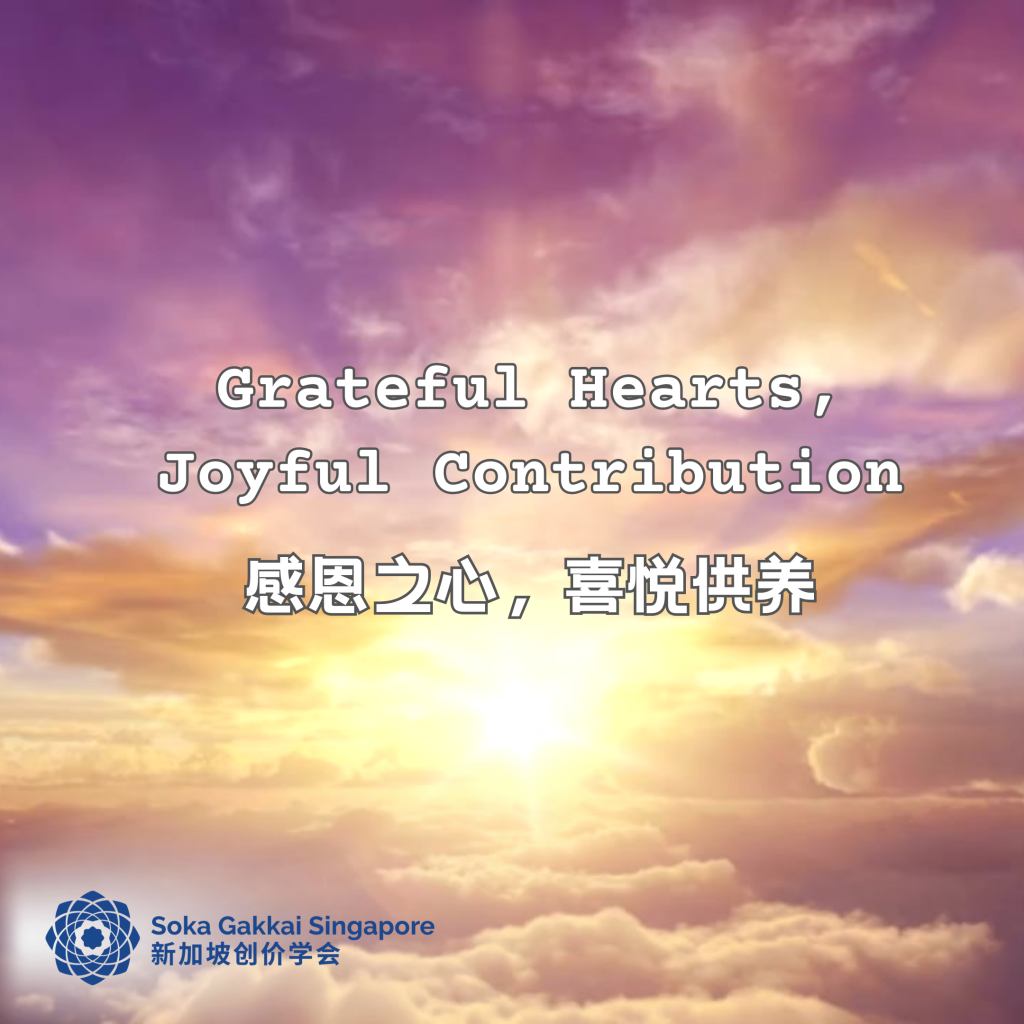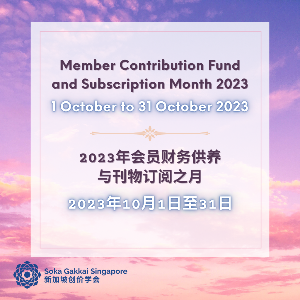 Every year, our Members Contribution Fund and Subscription month in October provides an opportunity for us to reaffirm the spirit of offering for the advancement of Singapore’s kosen-rufu. This year, let’s also share this spirit of sincere offering with our youth so that they too, can experience the transformation of lives through grateful and joyful offerings!