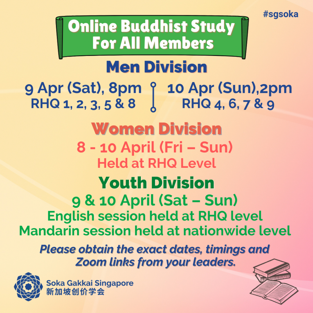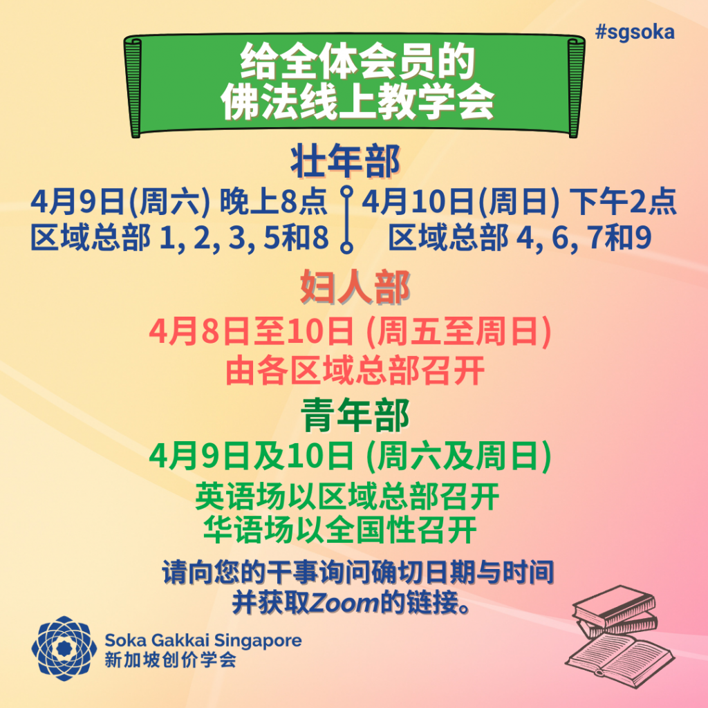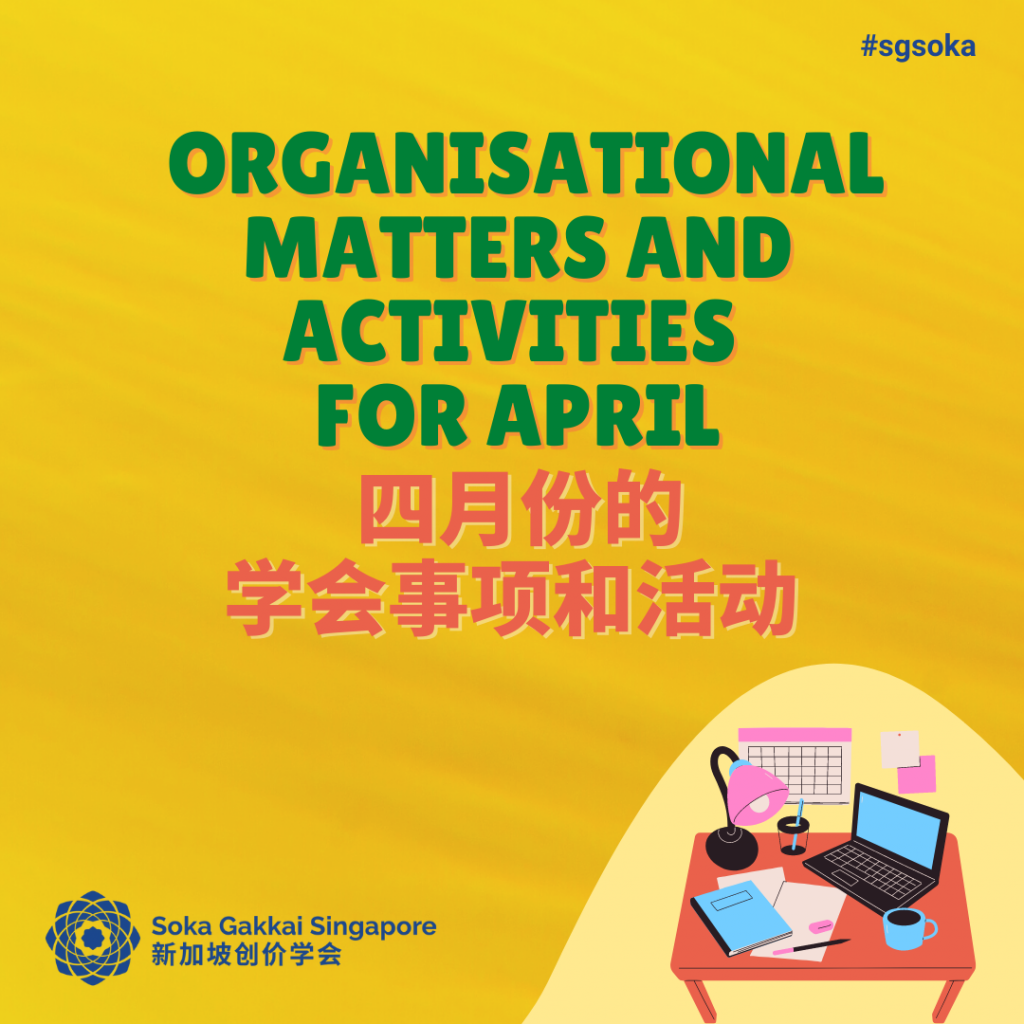 Let’s look forward to April’s activities to strengthen our faith, practice and study!