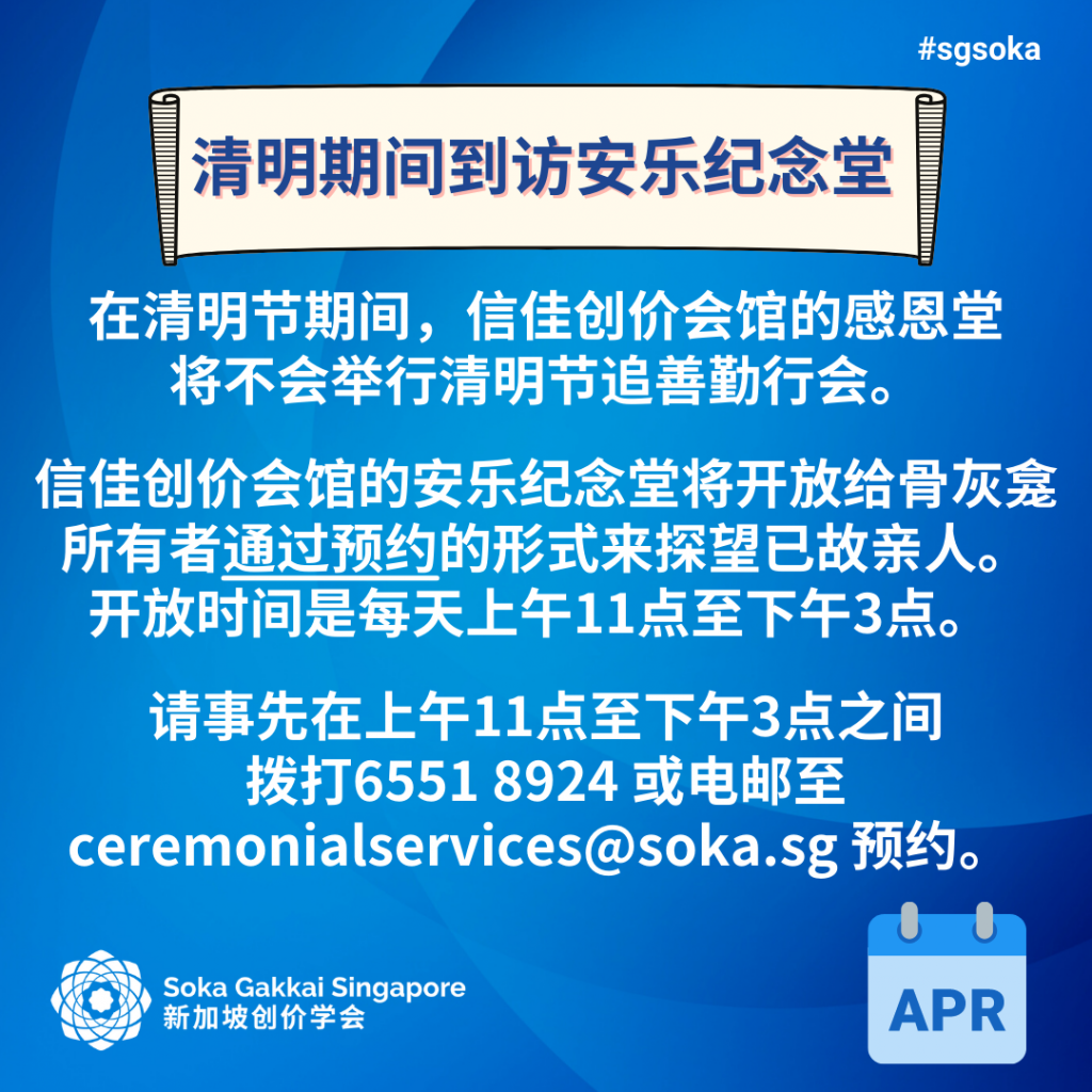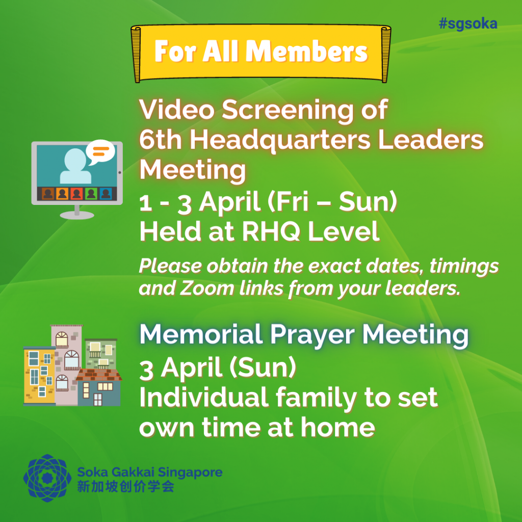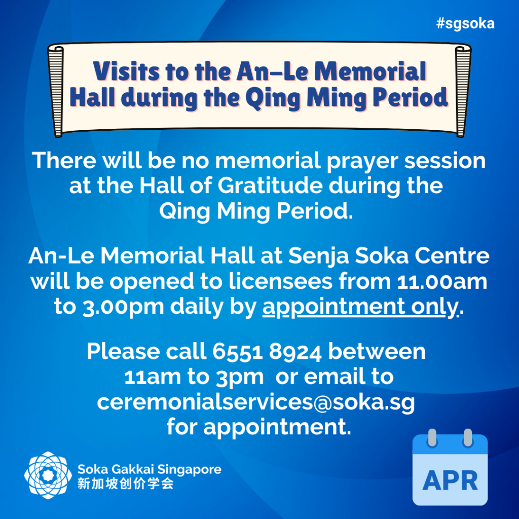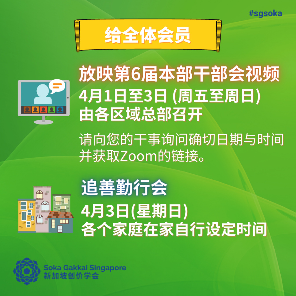 Let’s look forward to April’s activities to strengthen our faith, practice and study!