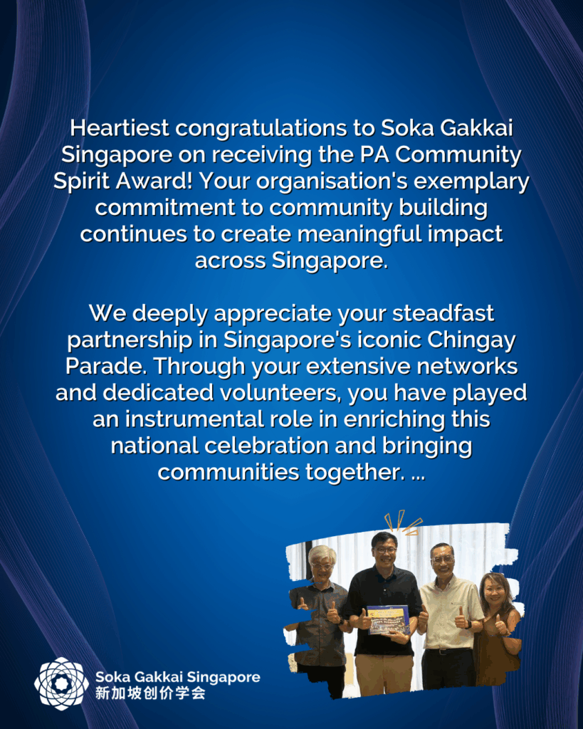 SGS was recently conferred the People’s Association (PA) Community Spirit Merit Award 2025 which acknowledges organisations that have made meaningful contributions to the community in collaboration with the PA. This marks the 8th year that we have received this recognition.