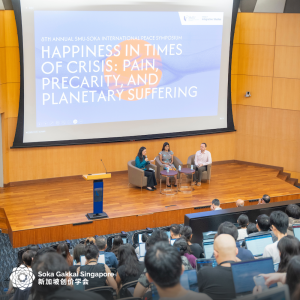 On 2 February, over 1,000 people attended the 8th Annual SMU-Soka International Peace Symposium held at the Ngee Ann Kongsi Auditorium at the Singapore Management University.