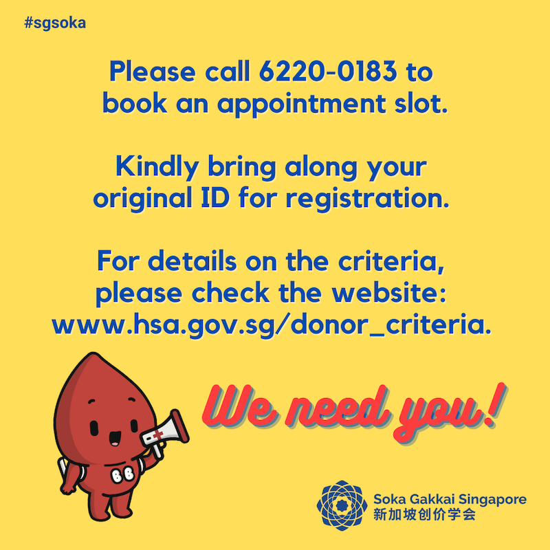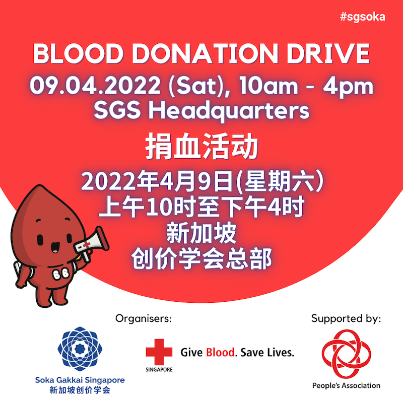 Together with the Singapore Red Cross, SGS will be organising a blood donation drive come April 9, 2022. Eligible persons will need to book an appointment via the hotline 6220-0183 prior to coming down on the actual day. Don’t miss this opportunity to save lives!