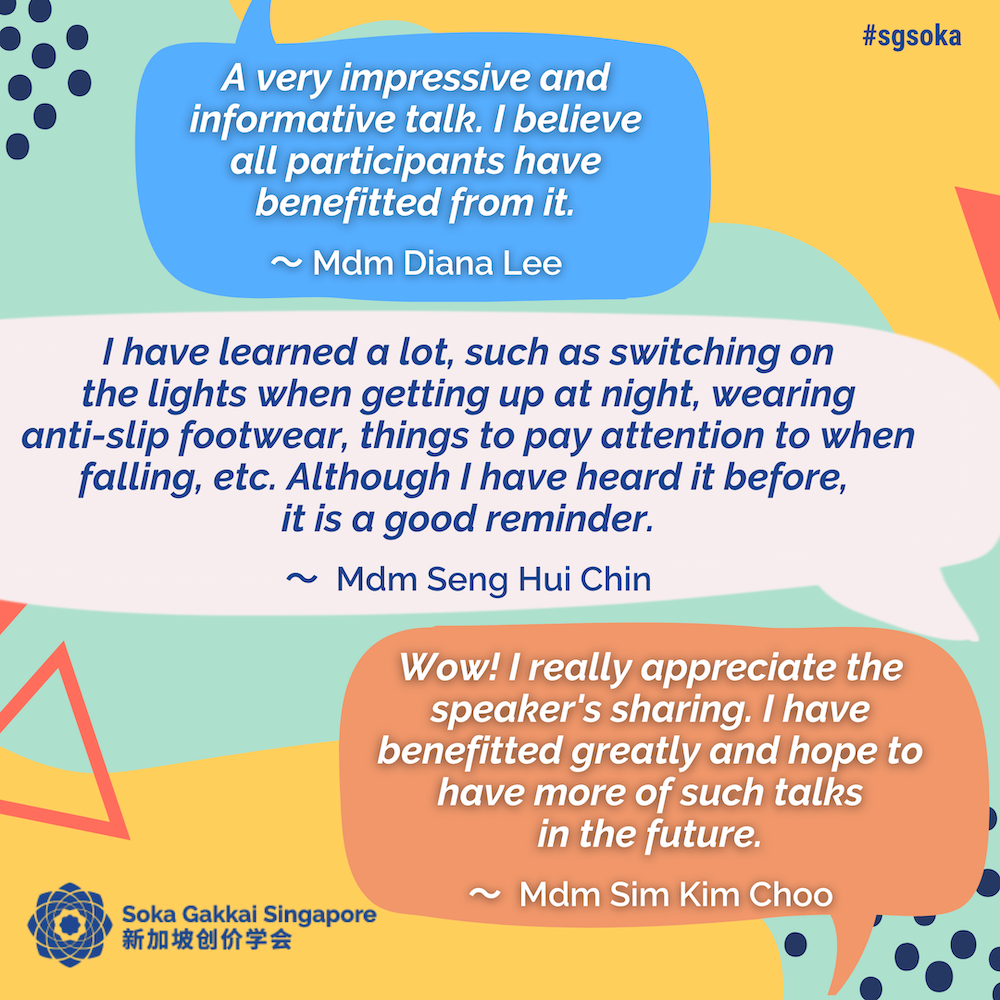 CGH Senior Staff Nurse Guo Lin shared useful information and tips on how one can prevent falls at the engaging session. They are: