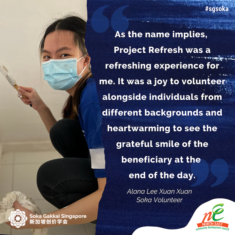 On 23 April, members of our Soka Volunteers Group joined other volunteers from the North East Community Development Council at Project Refresh, to declutter, paint and decorate the homes of seniors, just in time for the upcoming Hari Raya festivities, making this Ramadan extra special and meaningful!