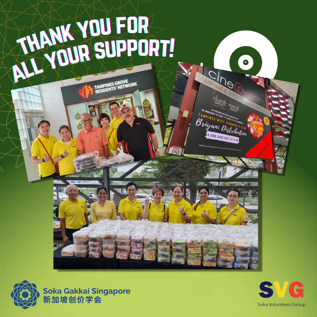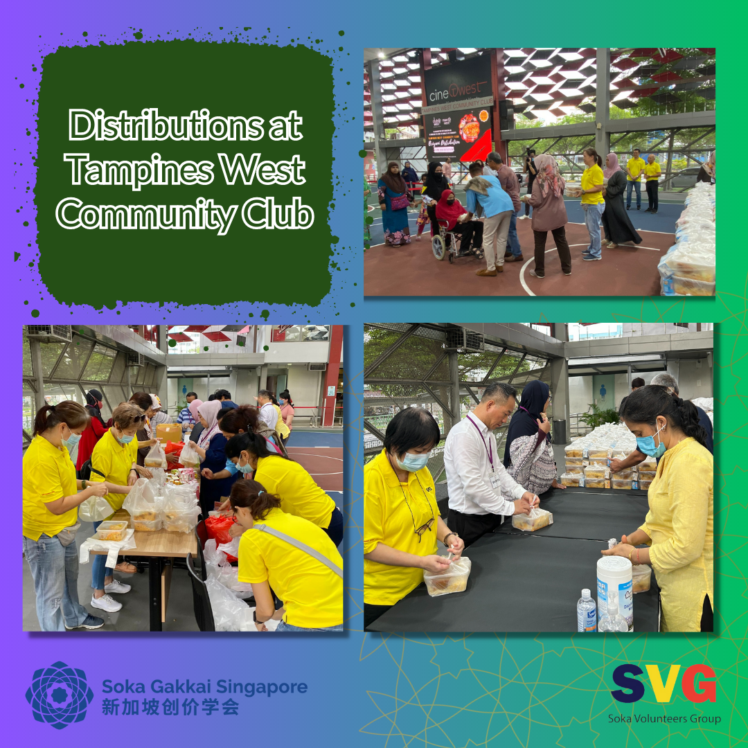 On 8 April, volunteers from Soka Volunteers Group supported in two Ramadan meals distribution events organised by Tampines West Community Club (TWCC) and Tampines Grove Residents’ Network (RN part of Tampines West).
