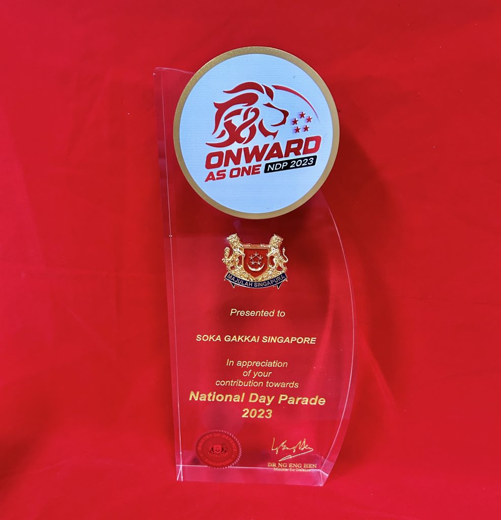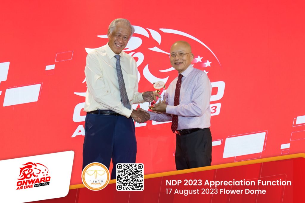 At the NDP 2023 Appreciation Ceremony on August 17, Minister for Defence, Dr Ng Eng Hen (left) presented the Certificate of Appreciation (Gold Award) to SGS. General Director Tay Eng Kiat received the award on behalf of SGS.
