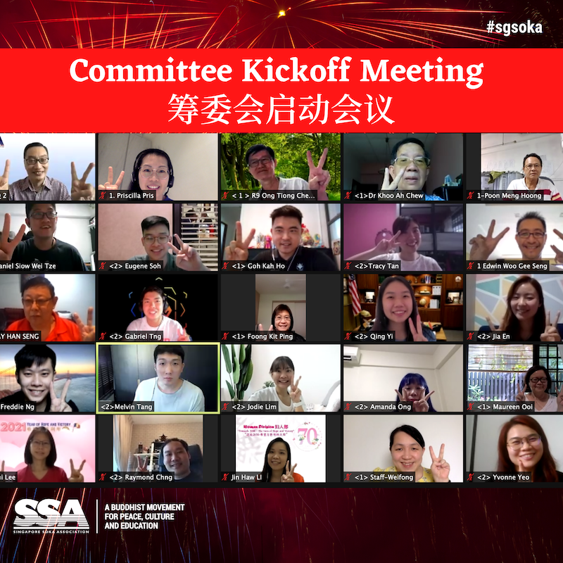 On the Saturday afternoon of 20 March, the NDP 20201 Committee kick-off meeting was held online, with attendees comprising SSA NDP 2021 Chairpersons, Choreographers and Trainers team and the Administration and Logistics group. Besides having an overview of this year’s show concept, the Committee members also deepened their faith through a Buddhist study session by SSA Study Department Chief.