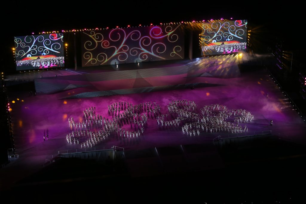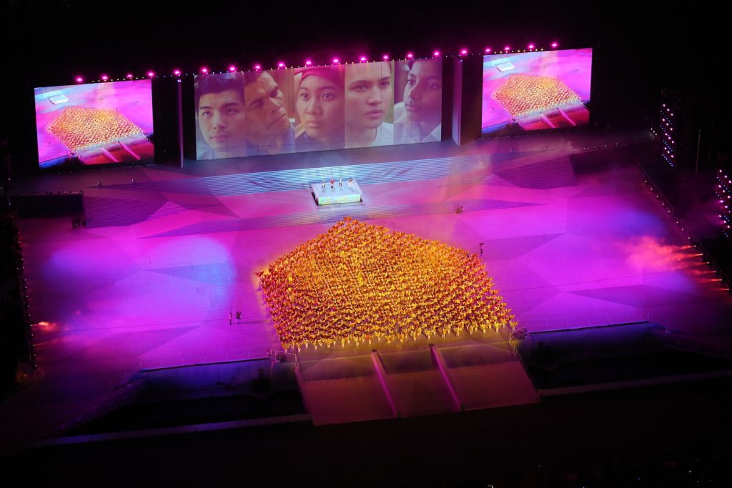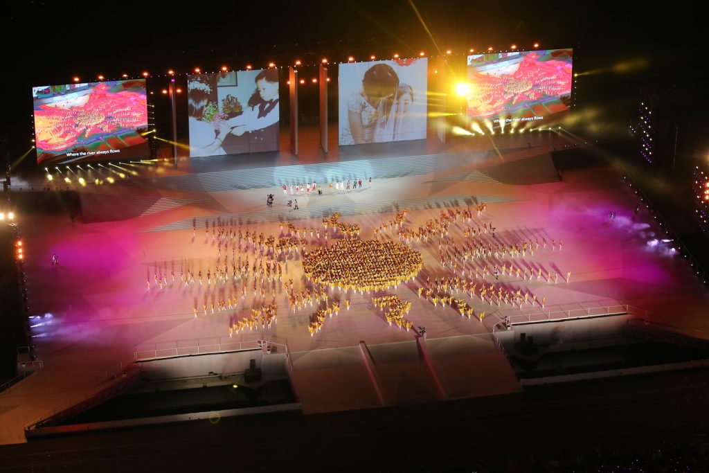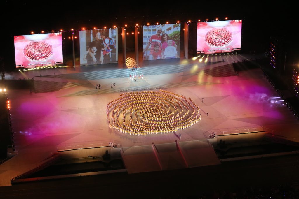 Gracefully navigating themselves to form intricate vines which symbolised ties that bind and provide for Singaporeans in times of need, the performers soon moved into four more formations — a heart-shape formation, a symbol of family strength and love; a house formation, a portrayal of the strength of community spirit; a spiral formation that led to a sun formation that depict woman shining as a sun of hope in their family and the community.