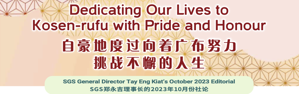In the significant month of October, SGS will be holding the Member Contribution Fund and Subscription Campaign. We sincerely hope that everyone will do your best to support and contribute towards the success of this campaign.