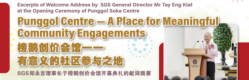 Excerpts of Welcome Address by SGS General Director Mr Tay Eng Kiat at the Opening Ceremony of Punggol Soka Centre