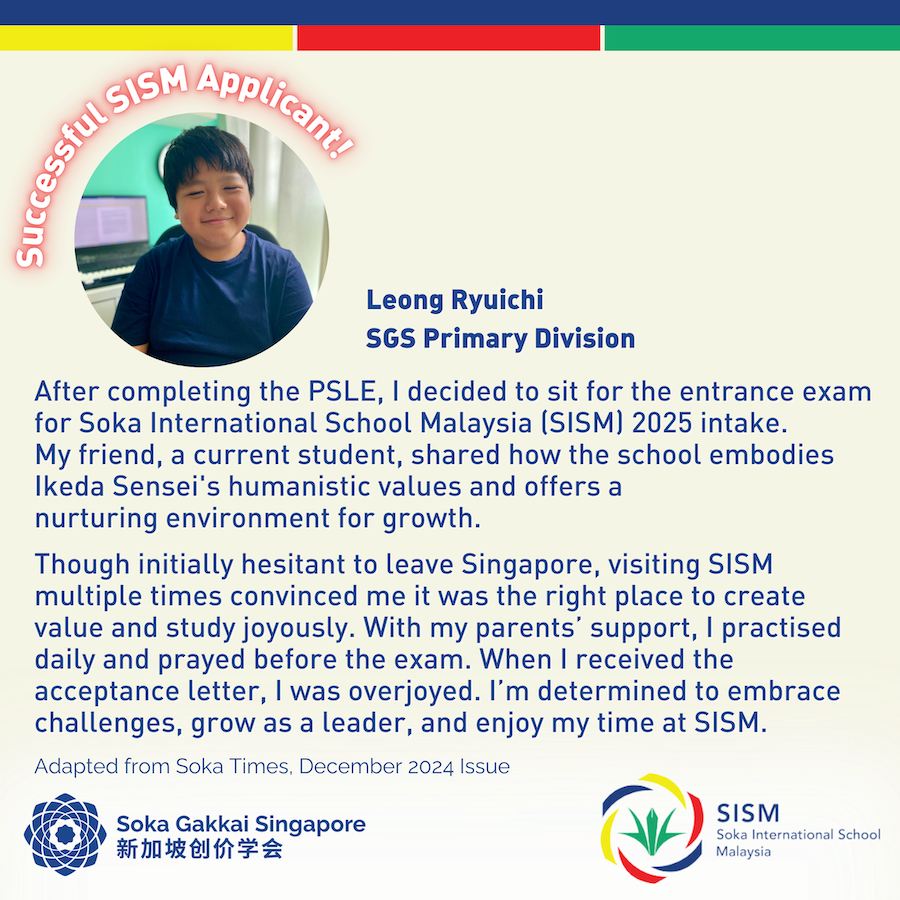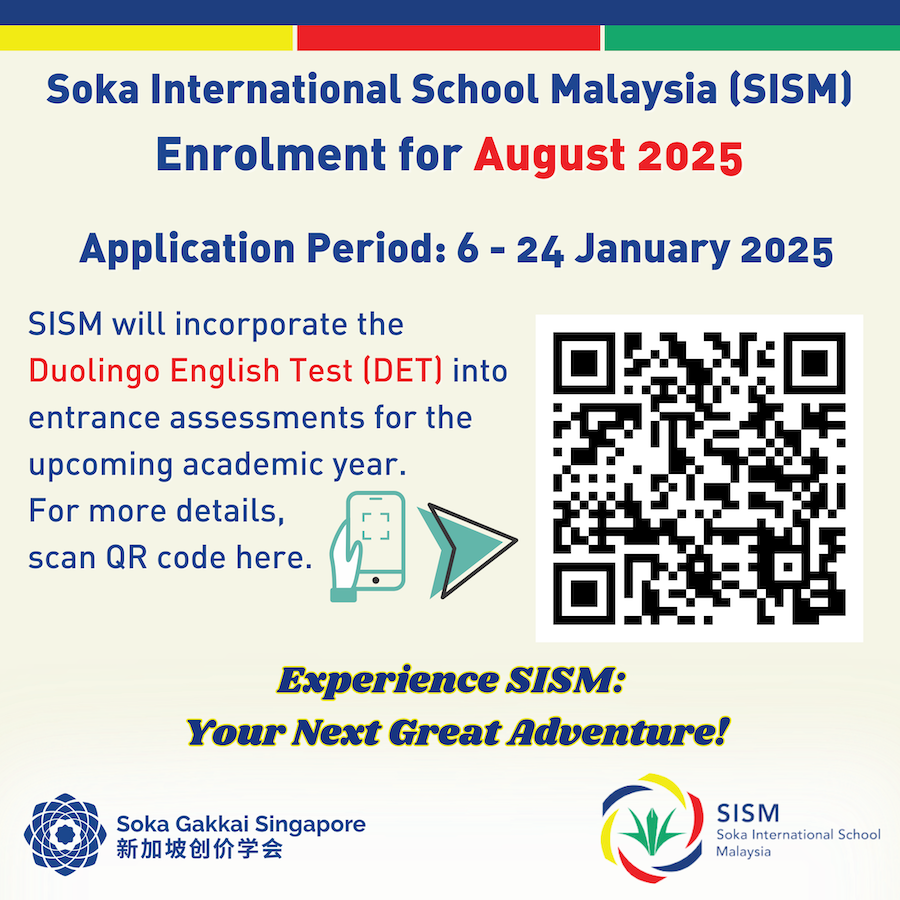 The Soka International School Malaysia (SISM) is now accepting applications for the 2025 school year!