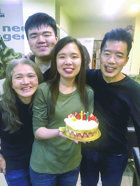 奕婷与家人。受到恩师池田先生的鼓励,胸中冉冉升起妙法的太阳的奕婷(中),以温暖和慈悲照耀家人。