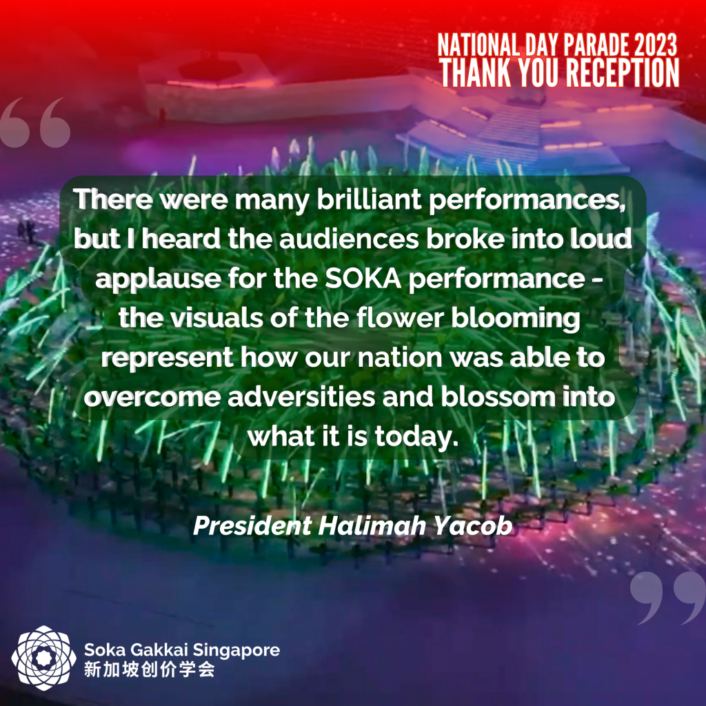On 30 August, SGS General Director Tay Eng Kiat and representatives attended a Thank You Reception at the Istana hosted by President Halimah Yacob for the National Day Parade 2023 Executive Committee and participating organisations. In her speech, President Halimah highlighted SGS performance in Act 2 of the show where “the visuals of the flower blooming represent how our nation was able to overcome adversities and blossom into what it is today”. Congratulations to all!