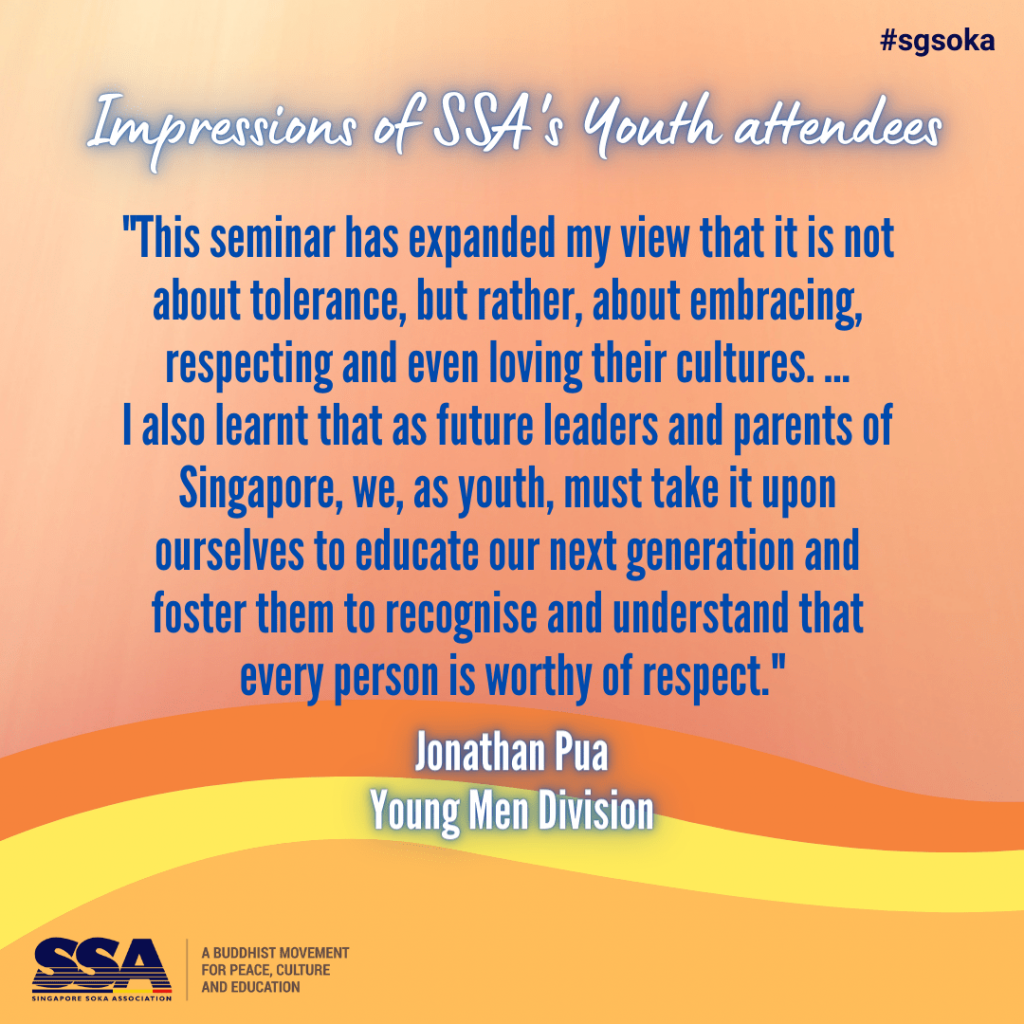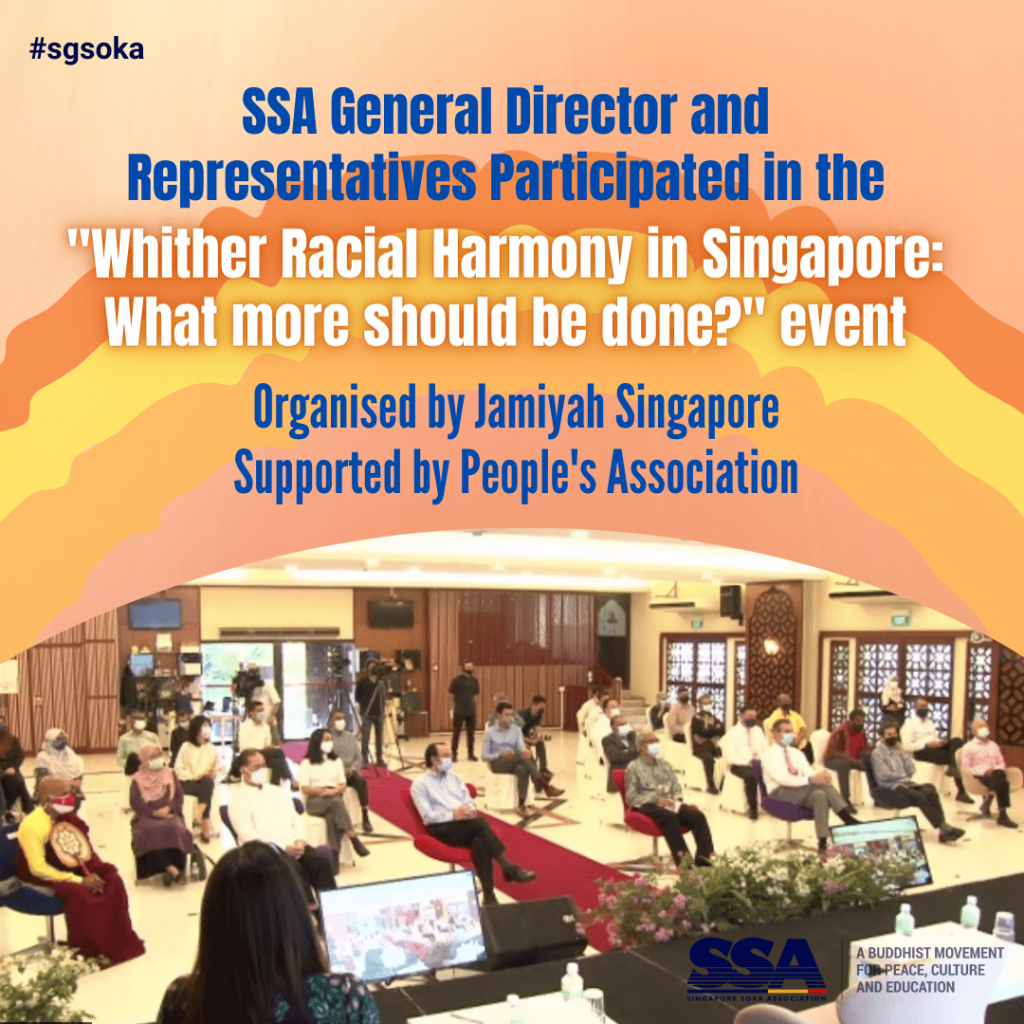 As we celebrate Racial Harmony Day today, let us base ourselves on the fundamental Buddhist principle of respect for the dignity of human life, and continue our efforts to build sincere relationships with others, regardless of race and religion.