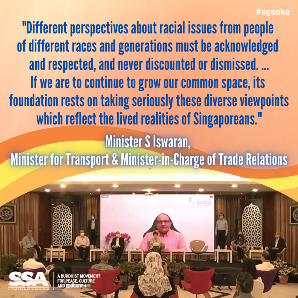 Guest of Honour, Minister S Iswaran, Minister for Transport & Minister-in-Charge of Trade Relations, shared in his opening speech, “We must acknowledge and respect these differences in perspectives, across generations and races, and never discount or dismiss them. If we are to continue to grow our common space, its foundation rests on taking seriously these diverse viewpoints which reflect the lived realities of Singaporeans.” (Source: Ministry of Transport website)