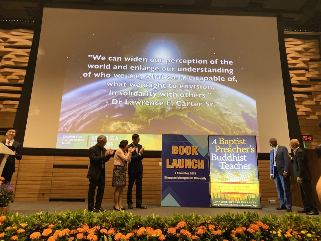 Upon the invitation of the Singapore Management University (SMU), Dr Lawrence Edward Carter Sr. spoke on the topic “Happiness and Suffering – A Reconciliation between East and West” to some 800 people at the Fifth Annual Ikeda Peace and Harmony Lecture held on 1 November 2019 at SMU.