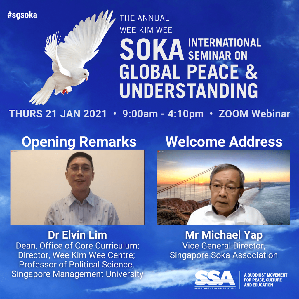 On 21 January, the 5th Annual Wee Kim Wee-Soka International Seminar on Global Peace and Understanding was held via Zoom webinar. This is the fifth under this series that SSA has collaborated with SMU since 2016.