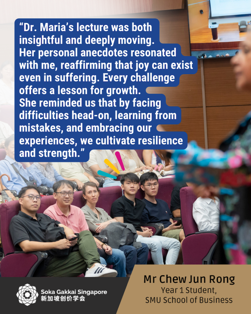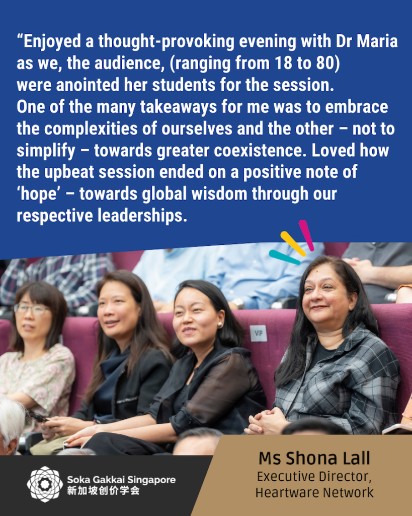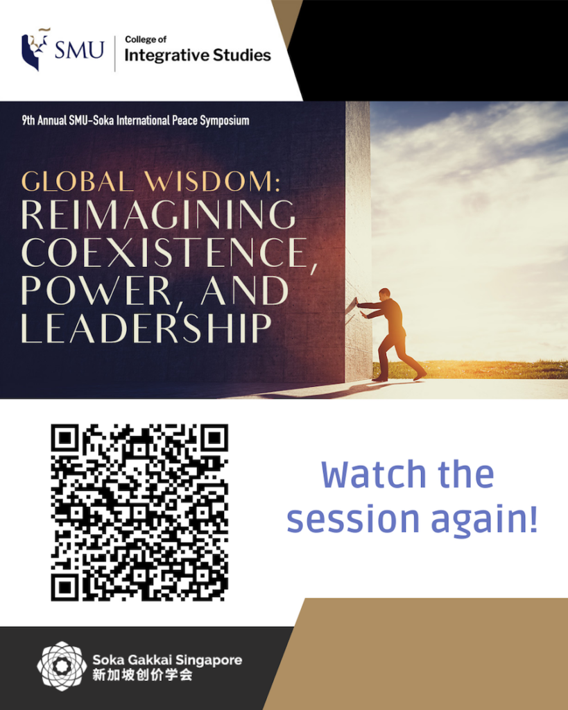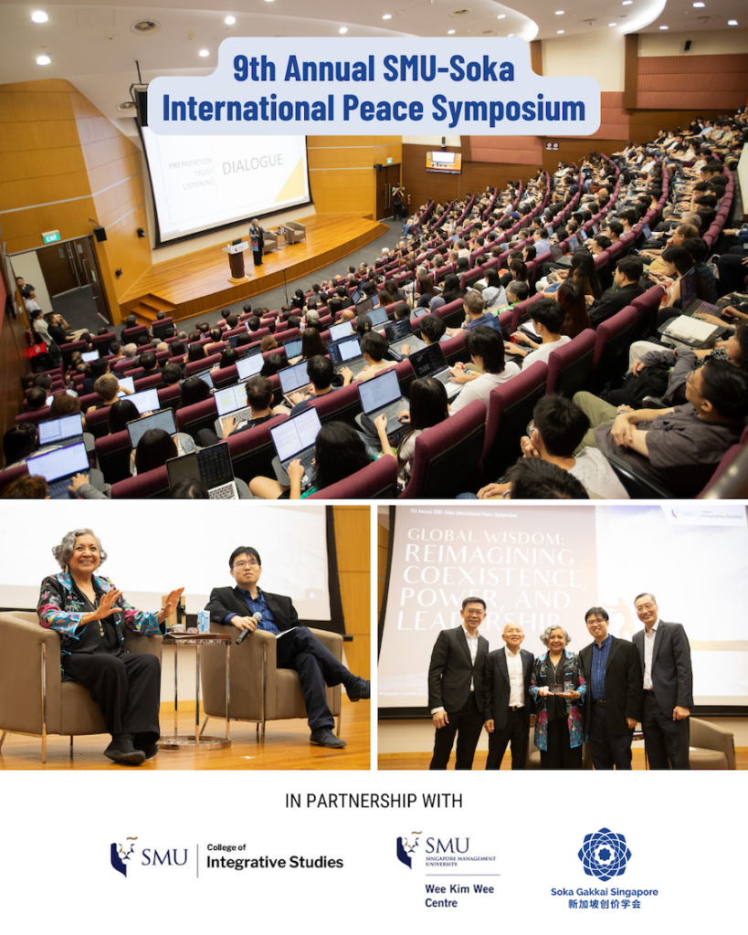 The 9th Annual SMU-Soka International Peace Symposium, titled “Global Wisdom: Reimagining Coexistence, Power and Leadership”, took place on February 21, drawing some 320 attendees to SMU’s Mochtar Riady Auditorium, with guest speaker Dr. Maria Guajardo, Professor of Leadership Studies at Soka University, Japan.