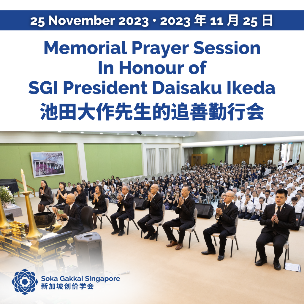 Nationwide Memorial Prayer Sessions in honour of Ikeda Sensei will also be carried out for all members at all SGS centers on 26 November.