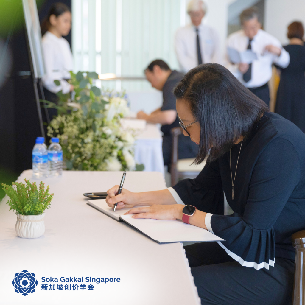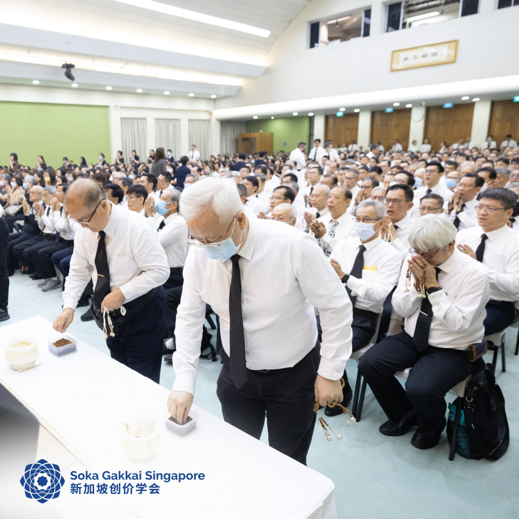 On 25 November, SGS conducted a Memorial Prayer Session in honour of SGI President Daisaku Ikeda, attended by SGS leader representatives and community partners. General Director Tay Eng Kiat led the memorial prayers, followed by incense offering by all attendees. Sharing of remarks by Soka Gakkai leaders during the 23 November Memorial service held in Tokyo, Japan, were also read out by SGS representatives.