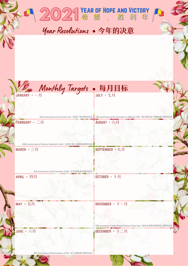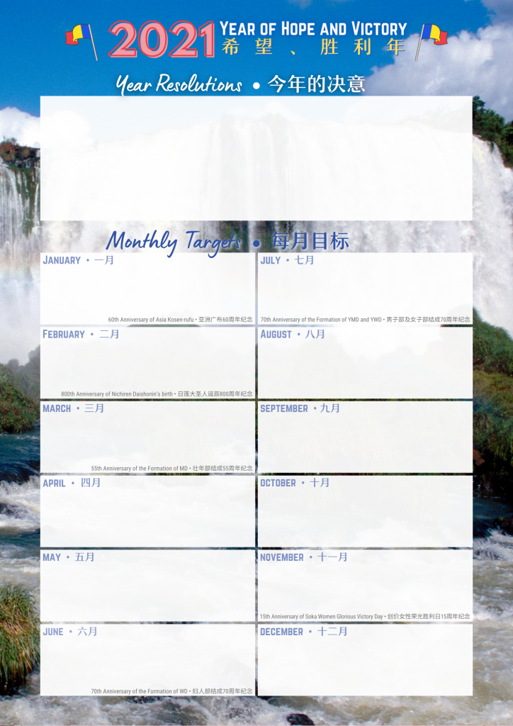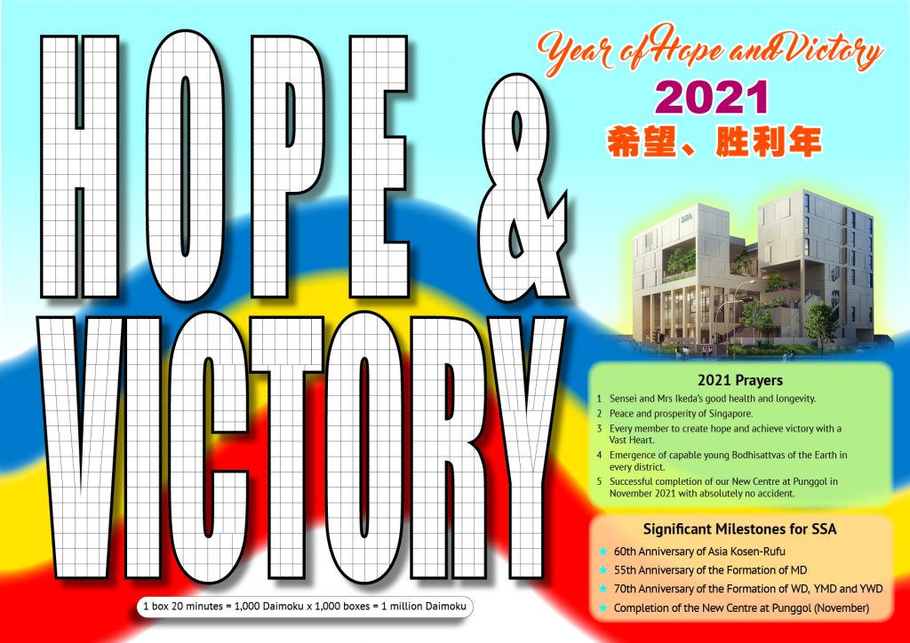 The year theme for 2021 is out! Announced at the 47th Headquarters Leaders Meeting held in November, the Soka Gakkai theme for 2021 is “Year of Hope and Victory”. Congratulations to all on this hope-filled theme!