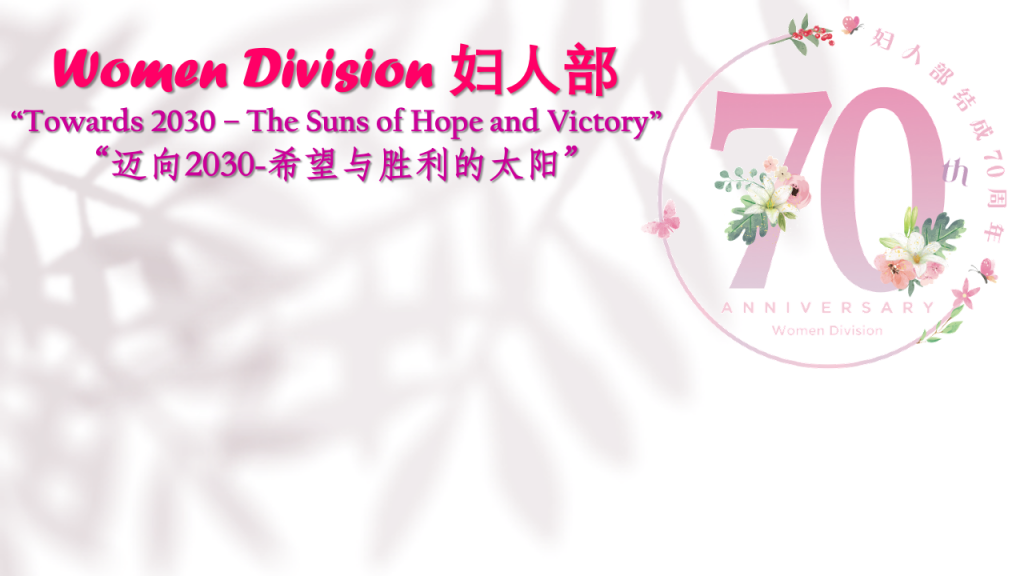Commemorating the 70th anniversary of the Women Division (WD) Formation, you can now download a special WD 70th Anniversary Zoom virtual background to use during the hope-filled WD general meetings in the month of June: