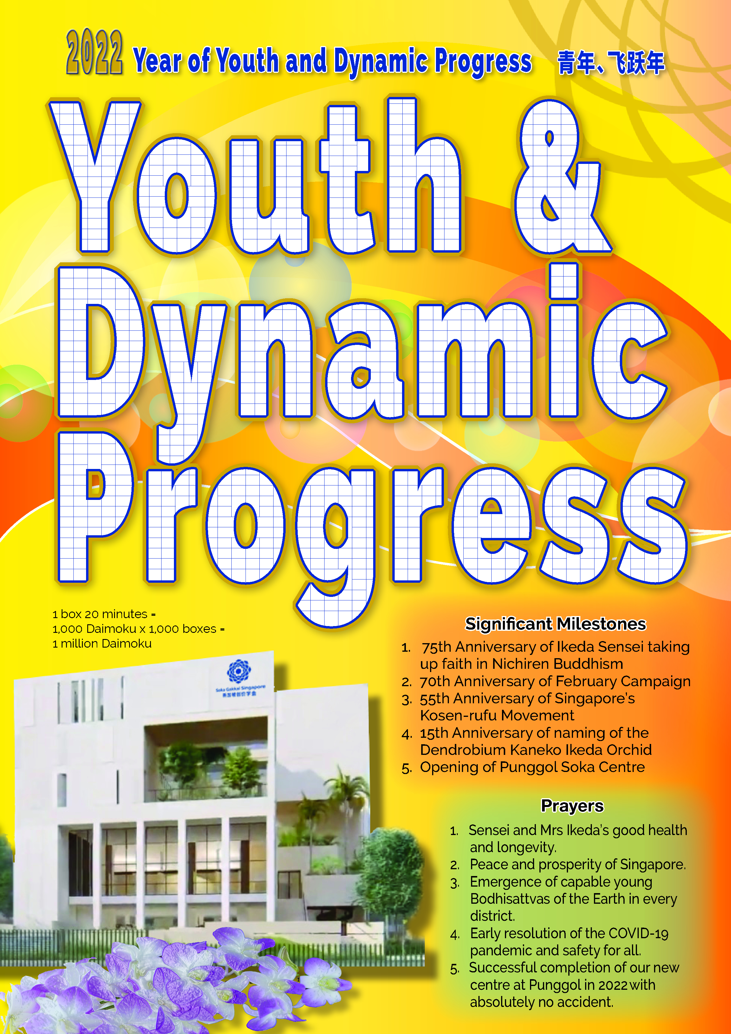 The Soka Gakkai theme for year 2022 has been declared as the ‘Year of Youth and Dynamic Progress’. To usher in this brand new hopefilled year, we have prepared a series of collectibles for everyone. Do check out the one million prayer chart, resolution card and zoom background for year 2022.