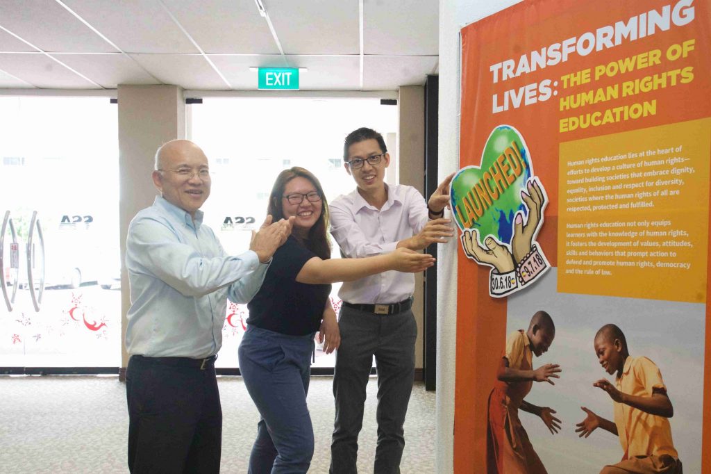 Prior to the symposium, the exhibition “Transforming Lives: The Power of Human Rights Education” was launched by SSA General Director Tay Eng Kiat and Student Division Chief Chia Meng Hwee. The exhibition aligns with the theme of the 2018 Peace Proposal in emphasizing the vital role of human rights education in surmounting social divides.